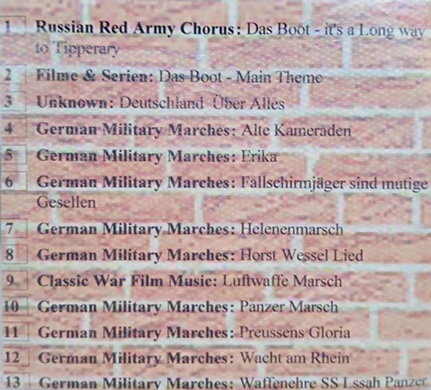 Pero no sólo escuchaba marchas militares española sino que también escuchaba marchas militares italianas o alemanas. Entre las alemanas le gustaban: “Alte Kameraden”, “Deutschland über alles”, “Wohlauf, Kameraden Aufs Pferd”, “Ein Heller und ein Batzen”. Y entre las italianas disfrutaba con: “Battaglioni del duce”, “Giovinezza”.