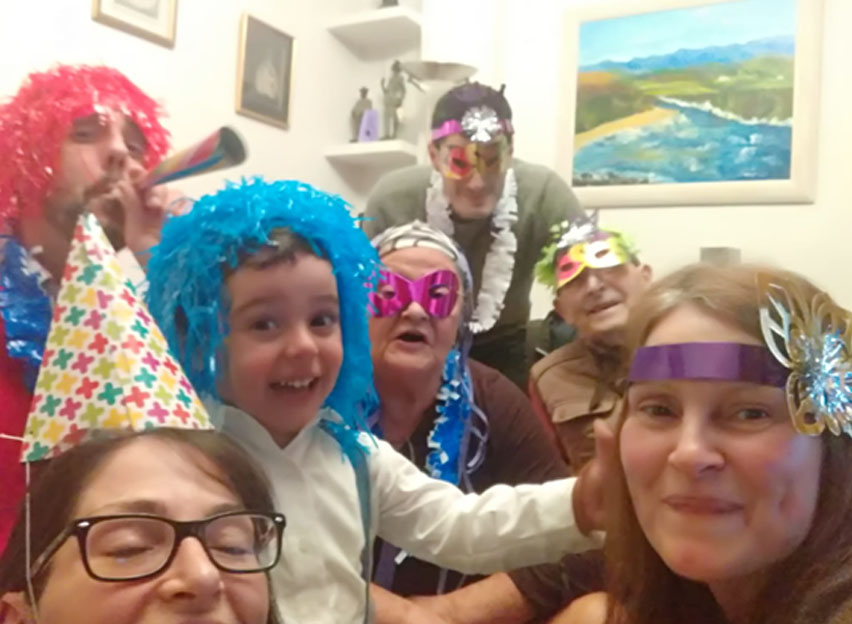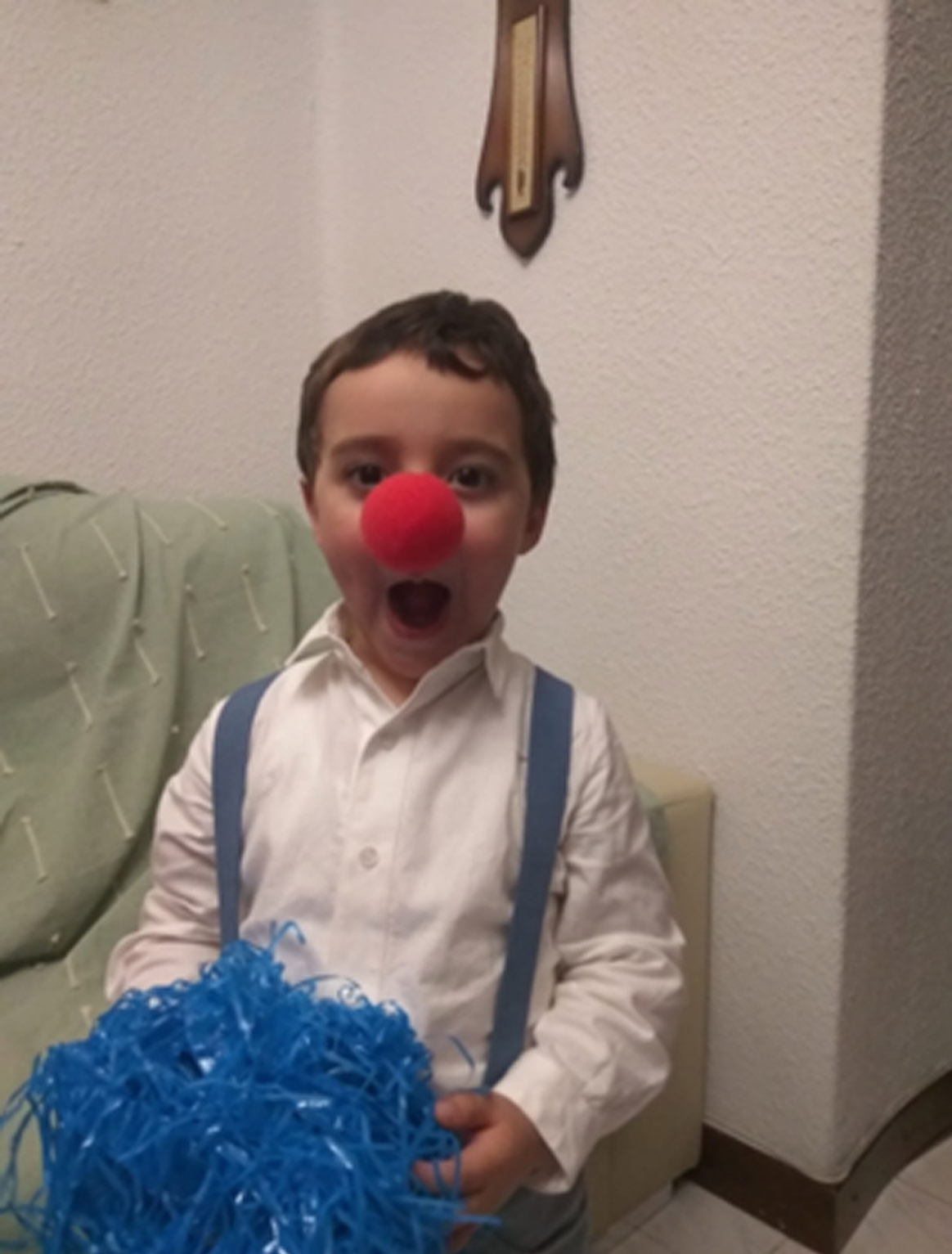Recuerdo que el último cumpleaños de Miguelín que vivió mi padre, como fue el 11 de enero de 2021 y estábamos en plena pandemia, no se podía hacer mucha celebración. Así que, a mi se me ocurrió comprar unas narices de plástico que imitaban a narices de animales para ponérnoslas el abu Pakitin, la abu Carmen y yo. La idea era esperar detrás de la puerta batiente de la entarda de mi casa, que servía como “burladero” durante la pandemia, a que llegase Miguelín y nos viese con nuestras nuevas narices.